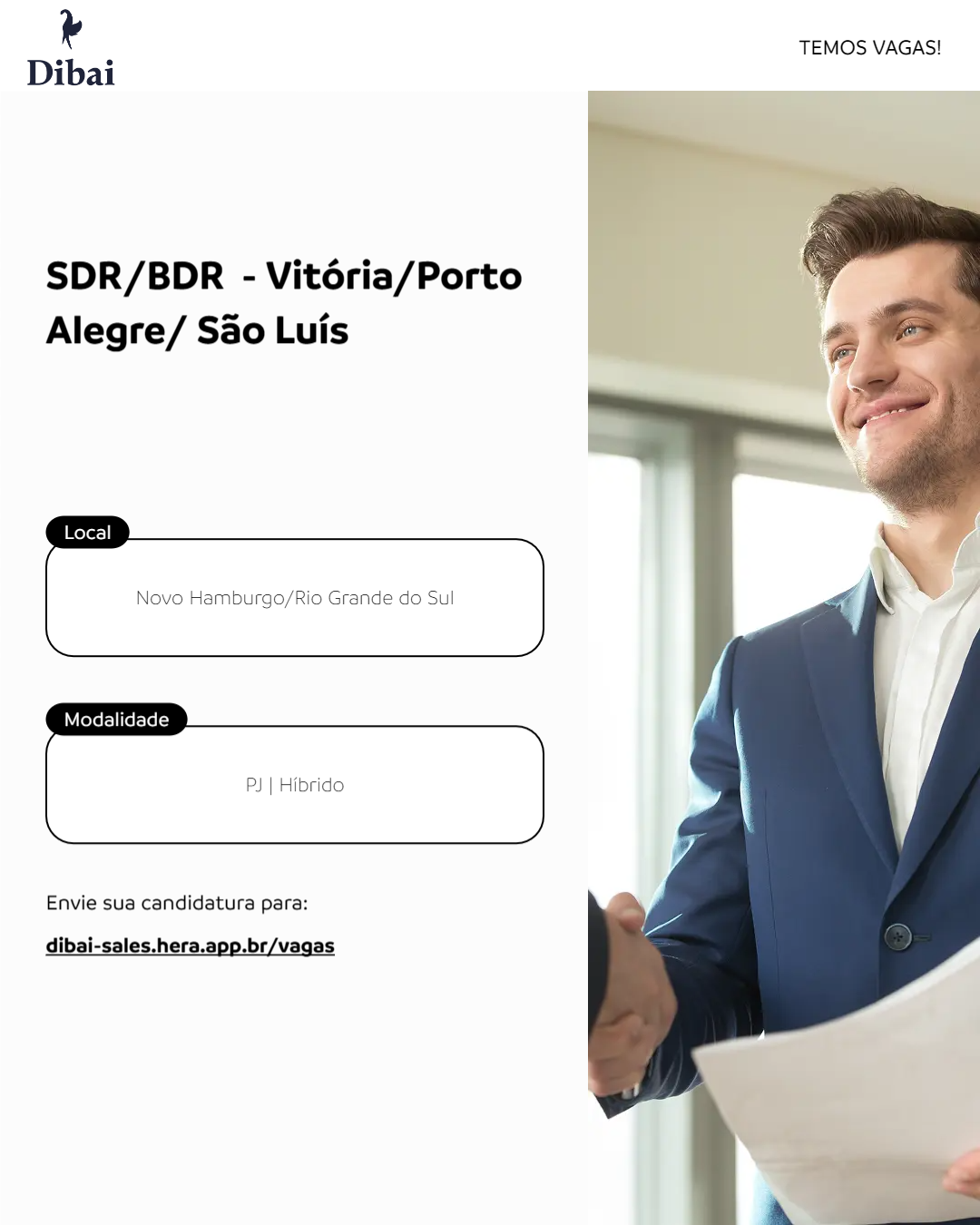 Somos a Dibai Sales uma aceleradora comercial com área educacional para montagem do setor comercial e terceirização de área comercial de SDR, BDR, LDR e Closer.